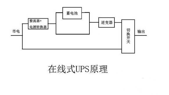 我們再來看下在線式UPS的工作原理。